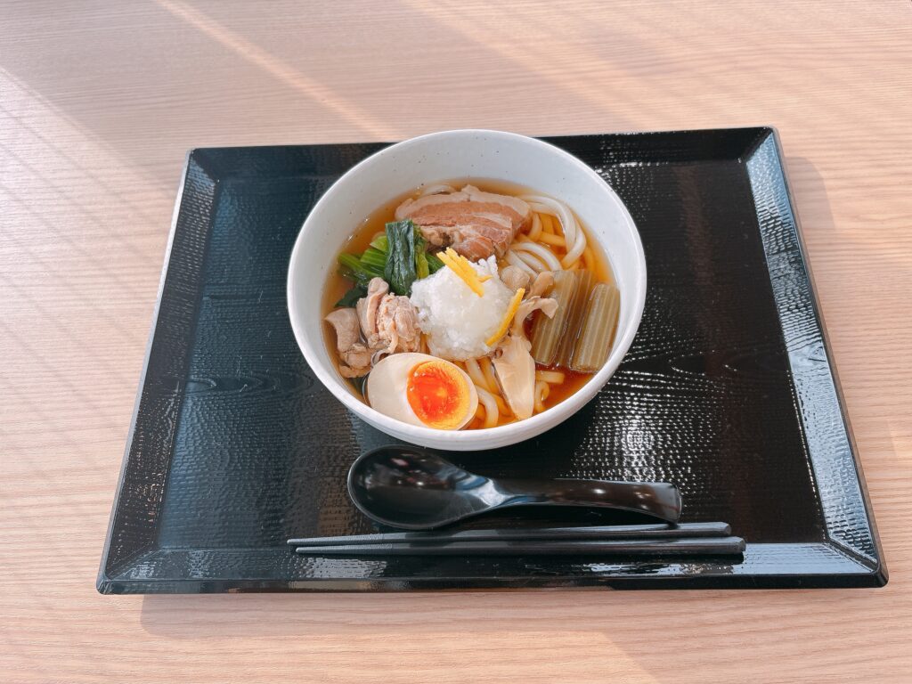 渋民から眺める岩手山や姫神山の恵みをイメージした、関西出汁うどんです。