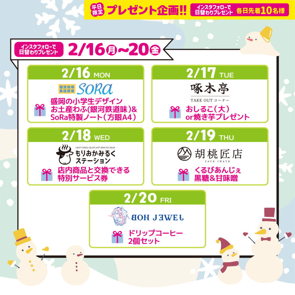 インスタをフォローしてくださっている皆さまへ、平日限定プレゼントを行います!